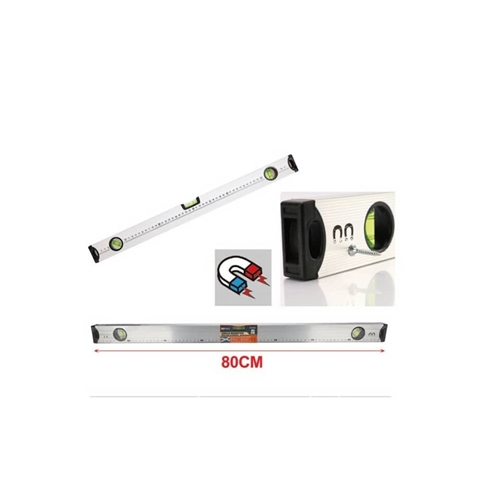 Bolla/livella in alluminio con calamita incorporata e indicazione di misura in cm. Dimensioni: 80 cm.