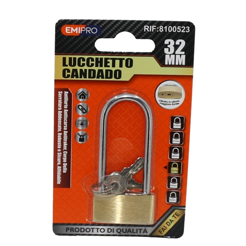 Lucchetto in ottone Emi anello lungo 32x16 mm - chiusura a chiave - 8100523