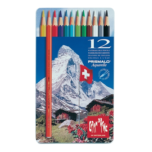 Matite colorate acquarellabili Prismalo, ideali per disegno artistico, illustrazioni, grafica e insegnamento del disegno. Legno di cedro di prima scelta, certificazione FSC® . Mina acquerellabile fine e resistente, diametro 2,95 mm, eccellente resistenza alla luce. Fusto esagonale con capsula, codice colore serigrafato. Ideali per diverse tecniche: acquerello, lavis, tratteggio, tecniche miste. Scatola di metallo composta da 12 colori assortiti.