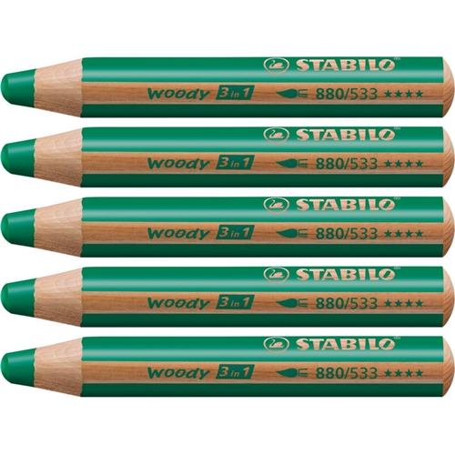 Matita colorata, pastello a cera, acquarello: il pastellone tuttofare. Stabilo woody 3 in 1 può scrivere su innumerevoli superfici come legno, vetro, plastica, cartone e lavagne, grazie alla sua mina morbidissima e ricca di colore. Può essere rimosso facilmente da tutte le superfici lisce e porose (finestre e lavagne bianche e nere): basta un panno umido. Stabilo woody 3 in 1 è fatto da legno 100% certificato PEFC, proveniente da foreste sostenibili. Non sbava è inodore ed offre prestazioni di lunga durata. In poche parola è lo strumento ecologico ed ideale per contrassegnare e scrivere su differenti superfici. Prodotto in conformità con il regolamento REACH (CE) n. 1907/2006. I pastelli Stabilo woody 3 in 1 sono l'ideale per bambini e genitori - sono lavabili dal vetro e possono essere utilizzati su molteplici superfici, non solo carta o cartone. Il matitone colorato Stabilo woody 3 in 1 è disponibile in 18 colori, ma funge anche da pastello a cera ed acquarello. Grazie al colore intenso ed opaco, può essere utilizzato anche per colorare su fogli scuri. Stabilo woody 3 in 1 è talmente versatile che viene utilizzato anche dagli artisti più esperti. Elevata opacità e intensità di colore anche su fogli scuri e sul vetro. Punta XXL - contiene una quantità di colore equivalente a quella di 8 matite colorate standard. Perfetto per colorare ampi spazi e adatta per qualsiasi tecnica di pittura. Fusto grosso ideale per le mani dei bambini: ideale per la presa corretta della matita. Mina antirottura, diametro di 10 mm. Tratto grosso e morbido. Colore verde scuro.