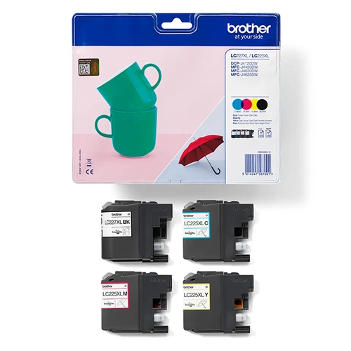 Cartucce originali LC-227+LC-225 XL Brother, composta da 4 colori (nero, ciano, magenta, giallo), ognuno dalla durata di 1200 pagine.