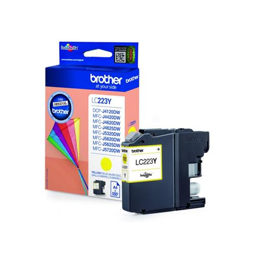 Cartuccia inkjet LC-223 Brother giallo LC-223Y. Durata 550 pagine - Adatto per Brother DCP-J4120DW, DCP-J562DW, MFC-J440DW, MFC-J4420DW, MFC-J4620DW, MFC-J4625DW, MFC-J480DW, MFC-J5320DW, MFC-J5620DW, MFC-J5625DW, MFC-J5720DW, MFC-J680DW, MFC-J880DW.