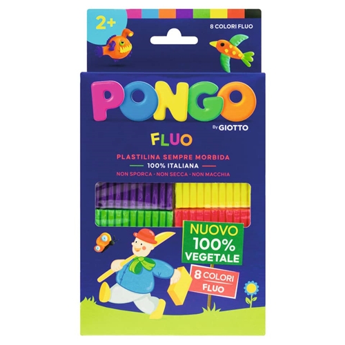Plastilina vegetale prodotta con ingredienti naturali da fonti rinnovabili. Sempre morbida, non secca mai, non sporca e non macchia e ha nuovi colori brillanti che puoi mixare per crearne di nuovi. Giocare con Pongo dà forma al pensiero e sviluppa la psicomotricità. Astuccio 264 g con 8 colori fluorescenti.