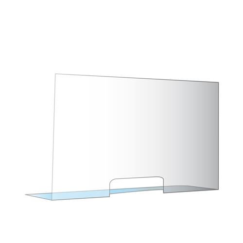 Pannello protettivo in policarbonato, facile e veloce da installare su banconi e scrivanie, dotato di finestra passante di dimensioni 20x15 cm.