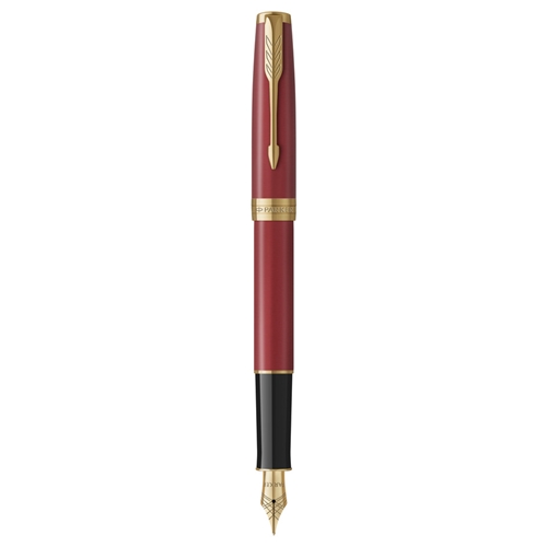 Questa penna stilografica è un'espressione classica di stile raffinato. Sonnet è il simbolo dell'eleganza Parker per tutti. Con una vasta gamma di design, ogni dettaglio è abilmente realizzato per conferire raffinatezza ad ogni occasione di scrittura. Puoi ricaricare questa penna stilografica con cartucce d'inchiostro Parker o inchiostro Parker in bottiglia. Una moderna vernice rosso intenso, che gioca con i riflessi della luce. Completato con finiture rifinite in oro e un pennino in acciaio inossidabile con finitura dorata. Fornita in una confezione regalo premium Parker. Questa penna stilografica è dotata di pennino di dimensione fine. Una cartuccia di inchiostro inclusa in colore nero e un convertitore di inchiostro.