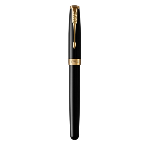 Penna Stilografica Parker Sonnet Black Lacquer GT. Una penna elegante e raffinata, composta da 17 componenti. La cappa e il fusto sono in acciaio nero laccato, mentre la clip e le finiture sono in oro. I materiali utilizzati sono di alta qualità e la lavorazione è accurata, per garantire un'esperienza di scrittura confortevole e precisa. La penna è dotata di pennino in acciaio inox fine. La penna viene fornita con una cartuccia di inchiostro nero e un converter, che consente di utilizzarla anche con inchiostro liquido. La Parker Sonnet Black Lacquer GT è un regalo ideale per ogni occasione, per chi ama la scrittura e desidera un prodotto di lusso.