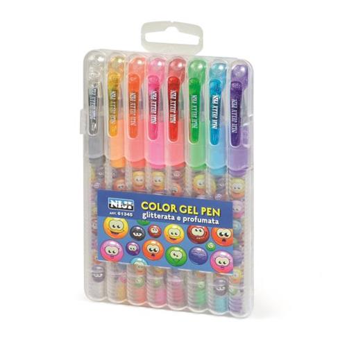 Penne gel Emoticon - Niji - con cappuccio - assortito - inchiostro profumato - conf. 8