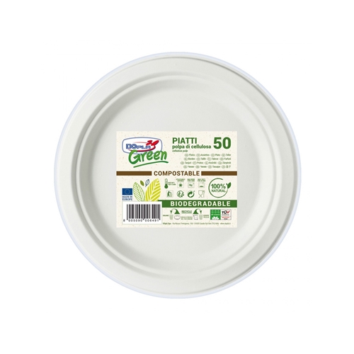 Piatti piani monouso biodegradabili Dopla Green - cellulosa - Ø 228 mm - bianco - conf. 50