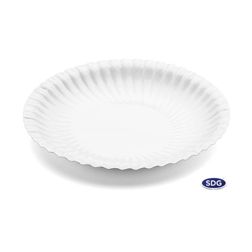 Piatto piano, Ø 18 cm e altezza 2,1 cm, in cartoncino riciclato patinato. Riciclabile con la carta ATICELCA 501. Confezione 50 pezzi.