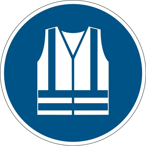 Segnaletica di sicurezza registrata per l'individuazione di aree pericolose, aree di stoccaggio, passaggi pedonali ecc.Pittogramma "Gilet di sicurezza ad alta visibilità obbligatorio" M015 conforme alla normativa UNI EN ISO 7010. Adesivo per l'applicazione su pavimenti nelle aree interne, come magazzini, centri di distribuzione, produzione e altro ancora. Robusto e resistente alle abrasioni. Conforme alla normativa UNI EN ISO 7010. Resistenza allo scivolamento R9 conforme alla normativa DIN 51130. Dimensioni: Ø 430 mm, spessore 0,4 mm.