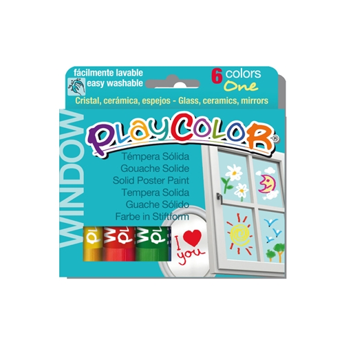 Playcolor tempera solida in stick 6 colori assortiti per vetri- 10 gr 2001- conf. 6