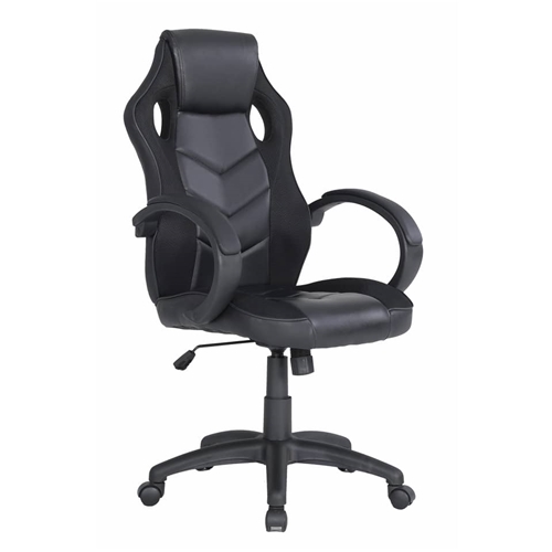 Poltrona gaming Las Vegas, nera, per adulti. Rivestimento in PU (poliuretano, ecopelle) certificato e atossico. Razze in nylon con ruote piroettanti. Sistema di elevazione a gas per la regolazione del sedile in altezza. Meccanismo oscillante bloccabile. Regolazione di tensione della spinta. Braccioli imbottiti. Dimensioni L61 x P66 x H106/116 cm, altezza seduta 45-55 cm, larghezza seduta 48 cm, altezza schienale 66 cm, larghezza schienale 48 cm, profondità seduta 46 cm, altezza braccioli da terra 66-76 cm, razza lunghezza 30 cm. Certificazione SGS alzo a gas. Certificazione qualità classe 3 componenti in plastica.