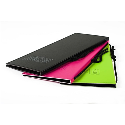 Portamenù con 10 tasche e cordino. Dimensioni: ½ A4, 33 x 14 x 0,5 cm. Colore nero. Copertina nera in PP lavabile anche con alcool.