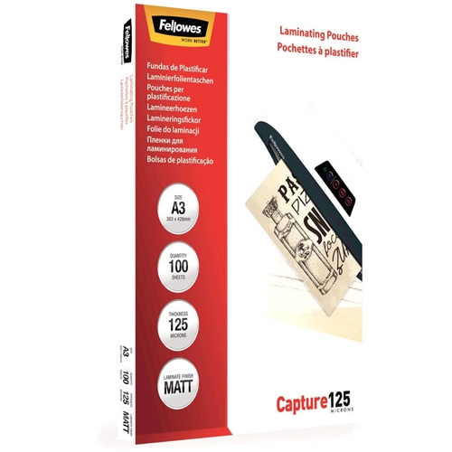 Pouches per plastificatrici Fellowes Standard Capture125 - A3 - 2x125 μm - goffrata - conf. 100