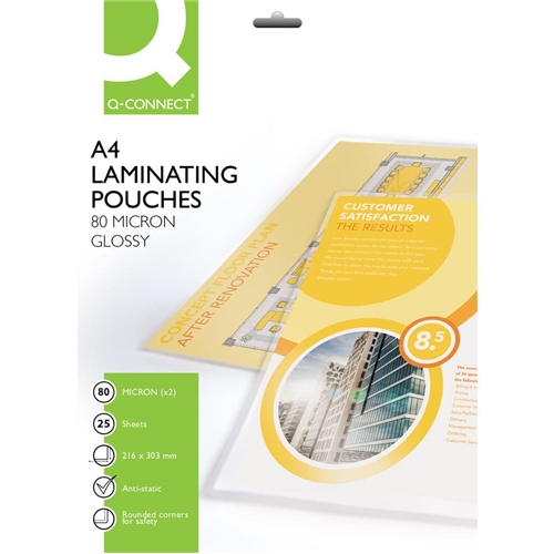 Pouches per plastificatrici Q-Connect 216x303 mm 80 micron A4 - conf. 25