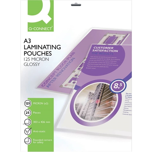 Pouches per plastificatrici Q-Connect 303x426 mm 125 micron A3 - conf. 25