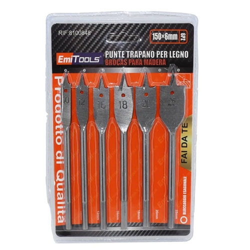 Punte legno a fresa Emi per fori 10/25 mm - conf. 4 pezzi