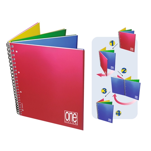Maxi quaderno a spirale con copertina tinta unita in plastica. 140+1 fogli con 4 fori archivio sul lato lungo. Carta da 70 g. Questi articoli sono prodotti con energia solare e sono certificati Federottica.