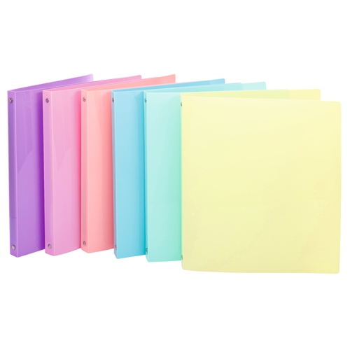 Raccoglitori in polipropilene a 4 anelli tondi colori pastel, diametro 16 mm. Colori assortiti.
