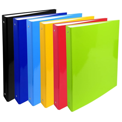 Raccoglitore Exacompta rivestito con carta plastificata. Interno in carta bianca. 4 anelli diametro 30 mm. Confezione da 24 colori assortiti.