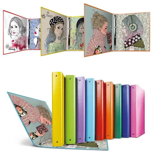 Raccoglitore in Stratopan Sei Rota Raggio A4 fantasie assortite - 4 anelli R30 mm - Ritratti - 36704099