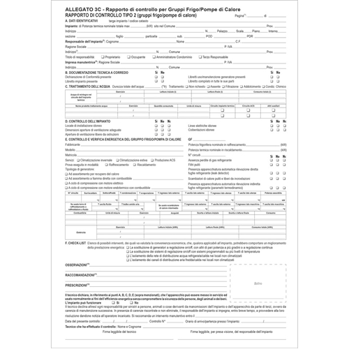 (Allegato 3) - Rapporto di controllo gruppi frigo. Snap a 3 copie con istruzioni.