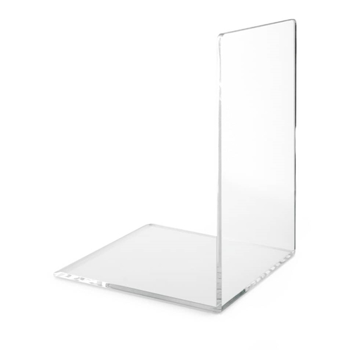 Elegante coppia di reggilibri in acrilico trasparente. Set da 2 pezzi formato 12x17 cm.
