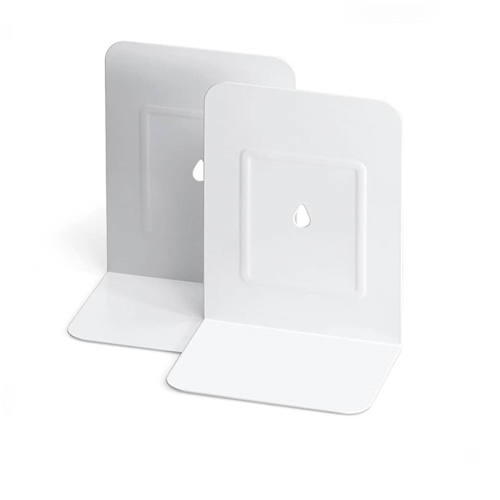 Coppia di reggilibri in metallo verniciato, formato 13,5x17,5 cm. Colore bianco.