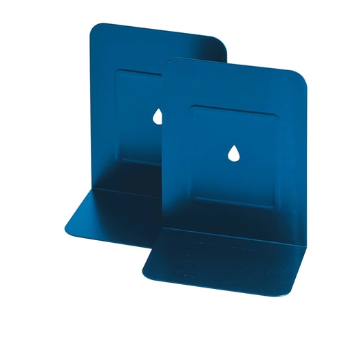 Coppia di reggilibri in metallo verniciato, formato 13,5x17,5 cm. Colore blu.