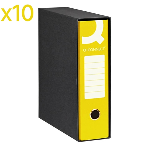 Registratori a leva Q-Connect con custodia - commerciale - dorso 8 cm - 23x30 cm - giallo - conf. 10