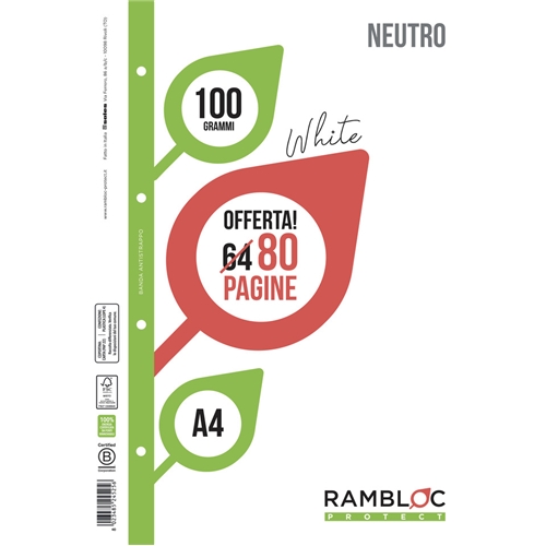 Ricambio quaderni ad anelli Rambloc formato A4 -32 ff +8 ff bianco 90524351- conf. 25