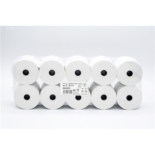 Rotoli registratore di cassa Rotolificio Pugliese Exclusive BPA FREE, garantito 10 anni, in carta omologata gr 55/mq. Formato 57 mm x 80 m. Foro 12 mm. Metratura garantita e certificata. Impaccati in termoretraibile da 10 rotoli.