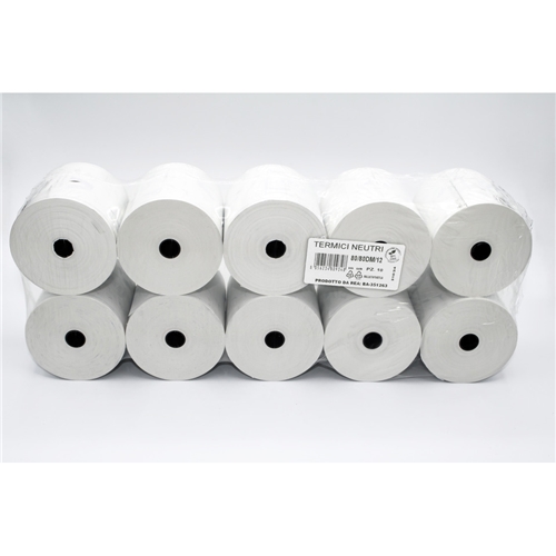 Rotoli per stampante termica non fiscale Rotolificio Pugliese Exclusive BPA FREE, garantito 10 anni. Formato 80 mm x 80 m. Foro 12 mm. Impaccati in termoretraibile da 10 rotoli.