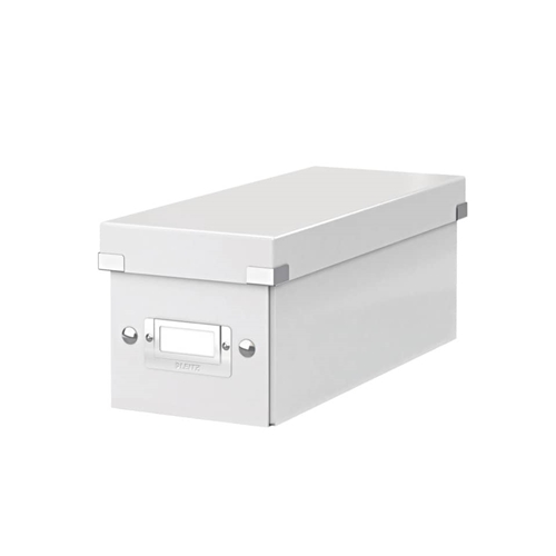 Scatola porta-CD Click & Store Leitz in colore bianco, elegante e adatta per contenere 30 custodie standard, 60 custodie sottili o 165 custodie bustina.
