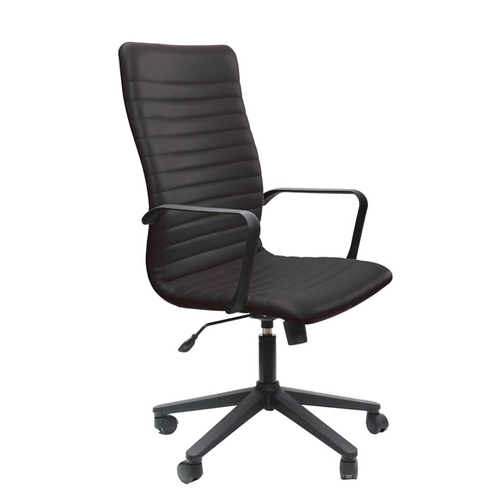 Sedia girevole Direzionale Schienale fisso; Elevazione a gas; Meccanismo oscillante con blocchi Alt. Tot.: 108 - 117 cm; Alt. Seduta: 44 - 54 cm; Alt. Schienale: 66 cm; Prof. seduta: 48 cm; Largh. Seduta: 50 cm; Largh. Schienale: 50 cm; . Braccioli: inclusi. Rivestimento Ecopelle; Colore nero.
