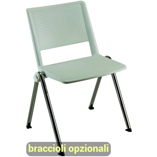 Sedia impilabile, dotata di base in acciaio tubolare cromo con schienale a rete traspirante e rigido