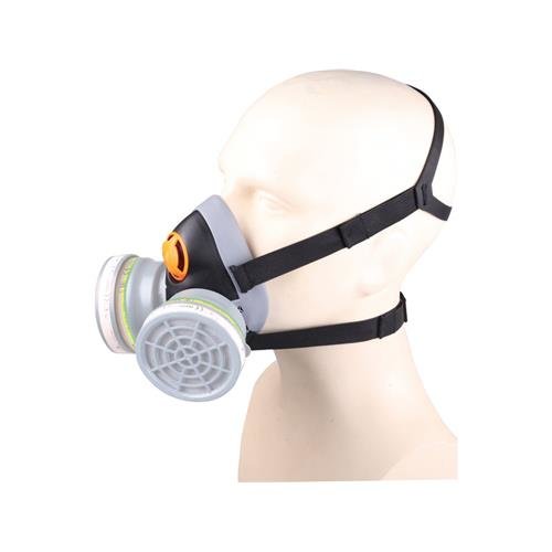 Semi maschera extra comfort 2 filtri: Corpo della maschera in polipropilene (PP) - Supporto per attacco dei filtri in termoplastica (TPE). Fasce elastiche. Predisposta per 2 filtri della serie M6000, venduti separatamente. Imballo in plastica preformata. Corpo della maschera : polipropilene (PP) rivestito in termoplastica TPE. Bande: elastan.