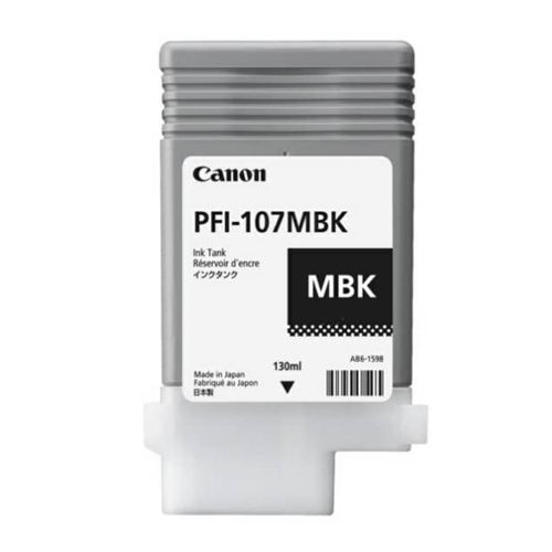Serbatoio inchiostro PFI-107MBK Canon, di colore nero opaco e dalla durata di 130 ml.