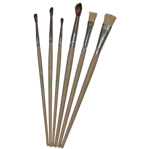 Set composto da: n°4 pennelli scolastici misura (4,8,10,12) + n°2 spazzola con setole misura 8 e 12. Manici in 30% paglia e 70% plastica riciclata. Facile da pulire. Lunghezza: 17-18,5 cm. Confezionato in custodia di cartone.