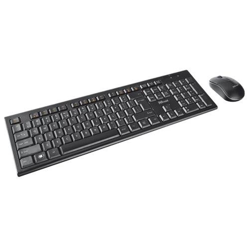 Set wireless con tastiera multimediale QUERTY protetta da versamento di liquidi e mouse ottico. 13 tasti multimediali, per l'utilizzo con mano destra o sinistra. Microricevitore USB riponibile. Plug&Play. Colore nero.