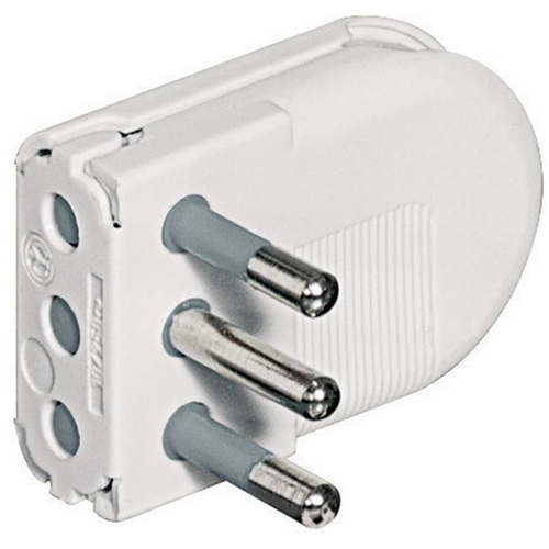 Spina volante 2P+T 10A salvaspazio bticino con uscita cavo regolabile e spinotti orientabili bianco - S2495TAE
