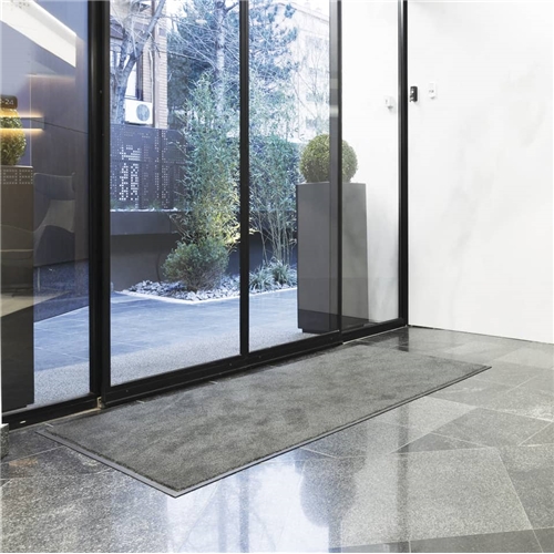 Zerbino antipolvere grigio DOORTEX 60x90 cm. Doortex Ultimate: la soluzione definitiva per il controllo delle polveri con tappeti d'ingresso professionali di altissima qualità. Tappeto d'ingresso da interni con funzione raschietto/assorbitore. Questo tappetino ha forti fibre raschianti che agiscono come piccoli pennelli per raschiare lo sporco dalle scarpe e fibre assorbenti che assorbono l'acqua. Le fibre rinforzate spazzolano microscopicamente sporco e polvere. Ha un supporto antiscivolo e impermeabile per la stabilità.