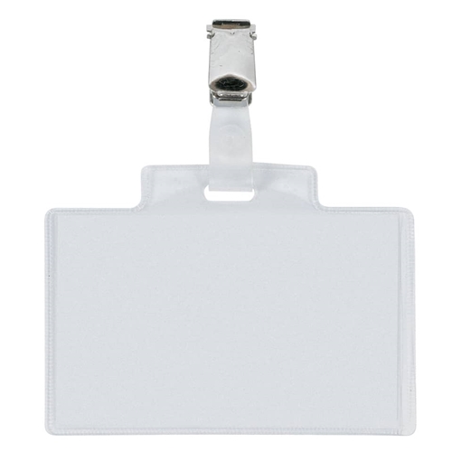 Pass 3E - Targhetta portanomi in PVC trasparente, alto spessore, completa di pinzetta in metallo e cartoncino. Apertura laterale. Ideale per congressi, riunioni, visite guidate. Modello PASS 3E, confezione composta da 100 pezzi.