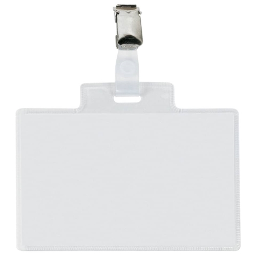 Pass 4E - Targhetta portanomi in PVC trasparente, alto spessore, completa di clip a pinzetta in metallo e cartoncino. Apertura laterale. Ideale per congressi, riunioni, visite guidate. Modello Pass 4E, confezione composta da 100 pezzi.