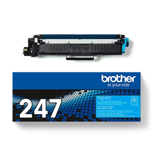 Toner originale TN-247C Brother, di colore ciano e dalla durata di 2300 pagine.