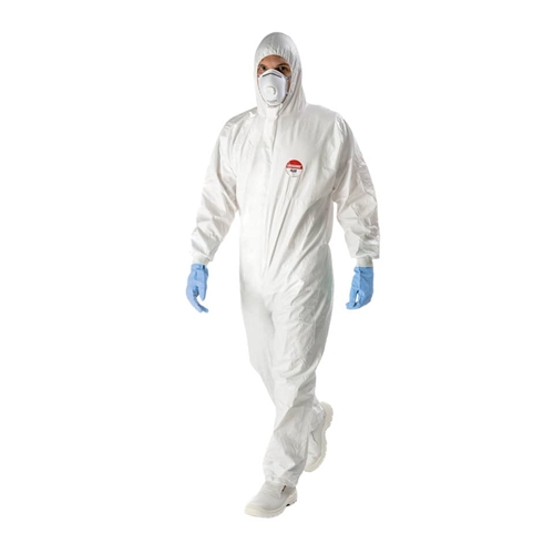 Tuta protettiva in tessuto non tessuto laminato da 63 gr./m2. Colore: bianco. Polsino elasticizzato. DPI III Cat. CE 0624. Norme applicate: EN 1149-5-EN 1073-2-EN 14126-EN ISO 13982-1 TIPO 5-EN 13034 TIPO 6.