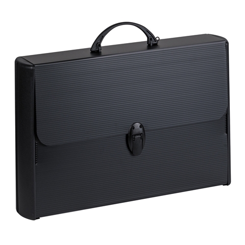 Valigetta in plastica polionda con 1 chiusura a clip. Formato 28 x 38 x 8,1 cm. Colore nero.