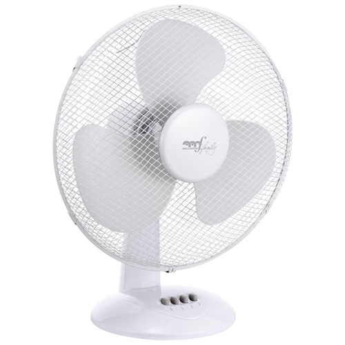 Ventilatore da Tavolo - diametro 40 cm, colore bianco, griglia nido d'ape, 3 velocità, 3 pale in polipropilene, cavo 1,5mt, potenza 45w, Alimentazione 230V ~ 50Hz . Base rotonda smontabile. 3 velocità. Funzione oscillazione. 3 pale in Polipropilene. Motore CCA, dimensioni 66 x 12 mm. Funzionamento con pulsanti. Spina VDE